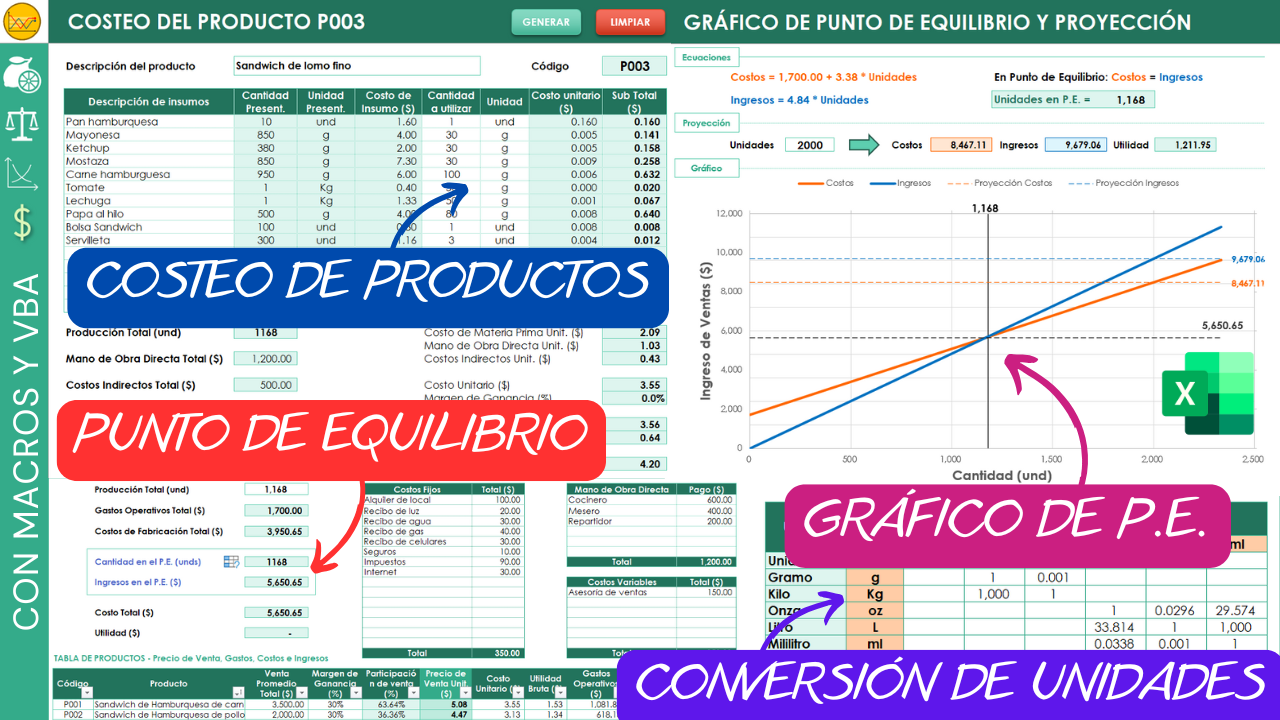 Plantilla Costeo de Productos y Punto de Equilibrio Multiproducto en Excel